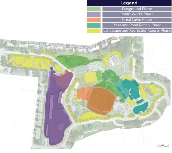 We want to make sure this park serves the citizens of Ballwin now and well into the future. The Master Plan is a guide to help ensure the space will be maximized for full usage for everyone who wants to enjoy it. The plan is to redo the park in phases over the next ten years. There are 5 phases (not necessarily in this order): Playground